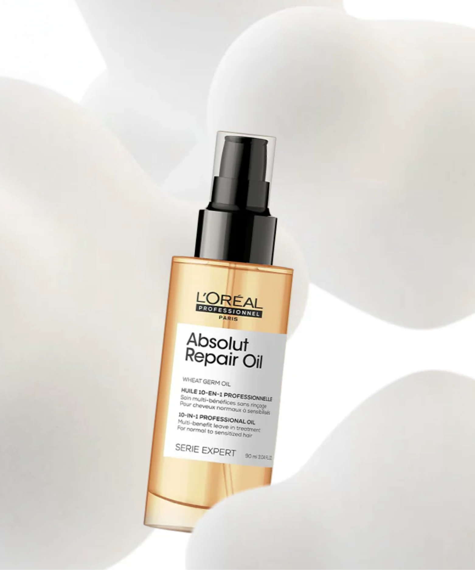 Absolut Repair Oil smooths, strengthens, and restores shine without weighing your strands down.
