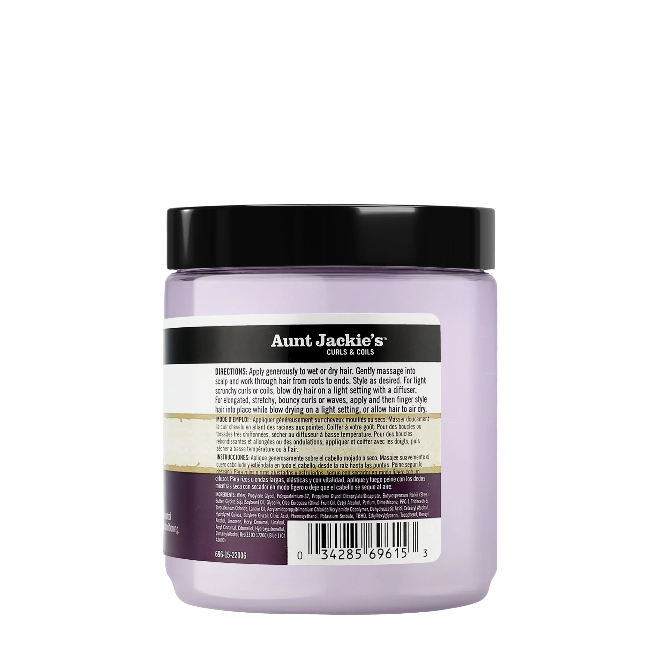Say GOODBYE to frizz, unruly curls or lifeless coils. Aunt Jackie’s Curl La La Defining Curl Custard delivers long-lasting control and definition to curls, coils, waves, frizzy hair and braid outs. It’s moisture-rich and blended with natural ingredients for healthier-looking and feeling ringlets. Curl La La won’t cause build-up, flake or leave hair stiff and dry. Use a little or a lot to create soft, elongated, bouncy curls and waves, tight, scrunchy curls or springy coils. y GOODBYE to frizz, unruly curls or lifeless coils. Aunt Jackie’s Curl La La Defining Curl Custard delivers long-lasting control and definition to curls, coils, waves, frizzy hair and braid outs. It’s moisture-rich and blended with natural ingredients for healthier-looking and feeling ringlets. Curl La La won’t cause build-up, flake or leave hair stiff and dry. Use a little or a lot to create soft, elongated, bouncy curls and waves, tight, scrunchy curls or springy coils.
