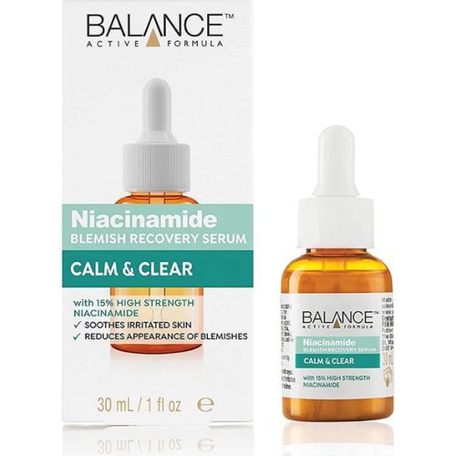 Balance Active Formula Niacinamide Blemish Recovery Serum is a water-based formulation with 15% Niacinamide, a hero skincare ingredient also known as Vitamin B3. Use every day to help reduce blemishes, improve skin texture and encourage a healthy complexion