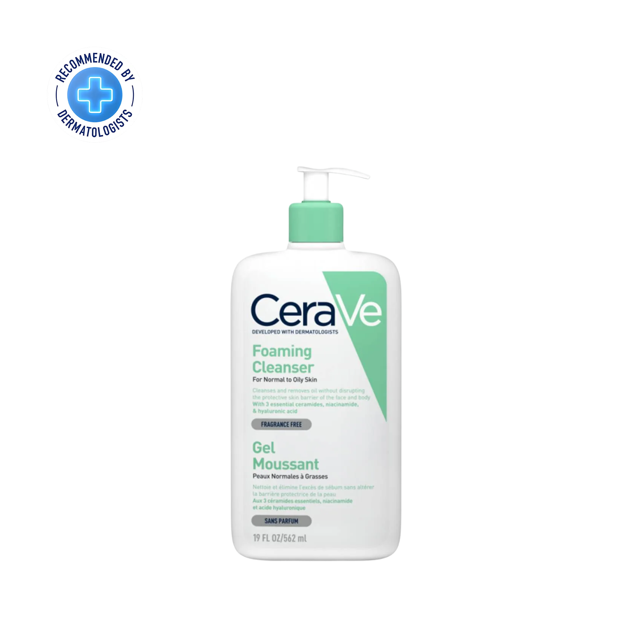 CeraVe® Foaming Cleanser’s gentle foaming gel action, deeply cleanses and refreshes skin while removing excess oils, dirt, and makeup without disrupting the protective skin barrier.