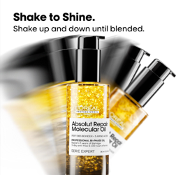 Patented lightweight, fast absorbing bi-phase oil with long-lasting fragrance designed by fine fragrance experts. Repairs 2 years of damage* for 100 hours of shine**, 3-day frizz-control and 3X more nutrition** with no weigh down. Hair is stronger (+97% strength**) with improved elasticity and movement***, and +83% smoothness.** *instrumental test at the cuticle level ** instrumental tests *** Consumer test after 2 weeks of use of the Absolut Repair Molecular Shampoo + Rinse-off serum + Mask + Oil