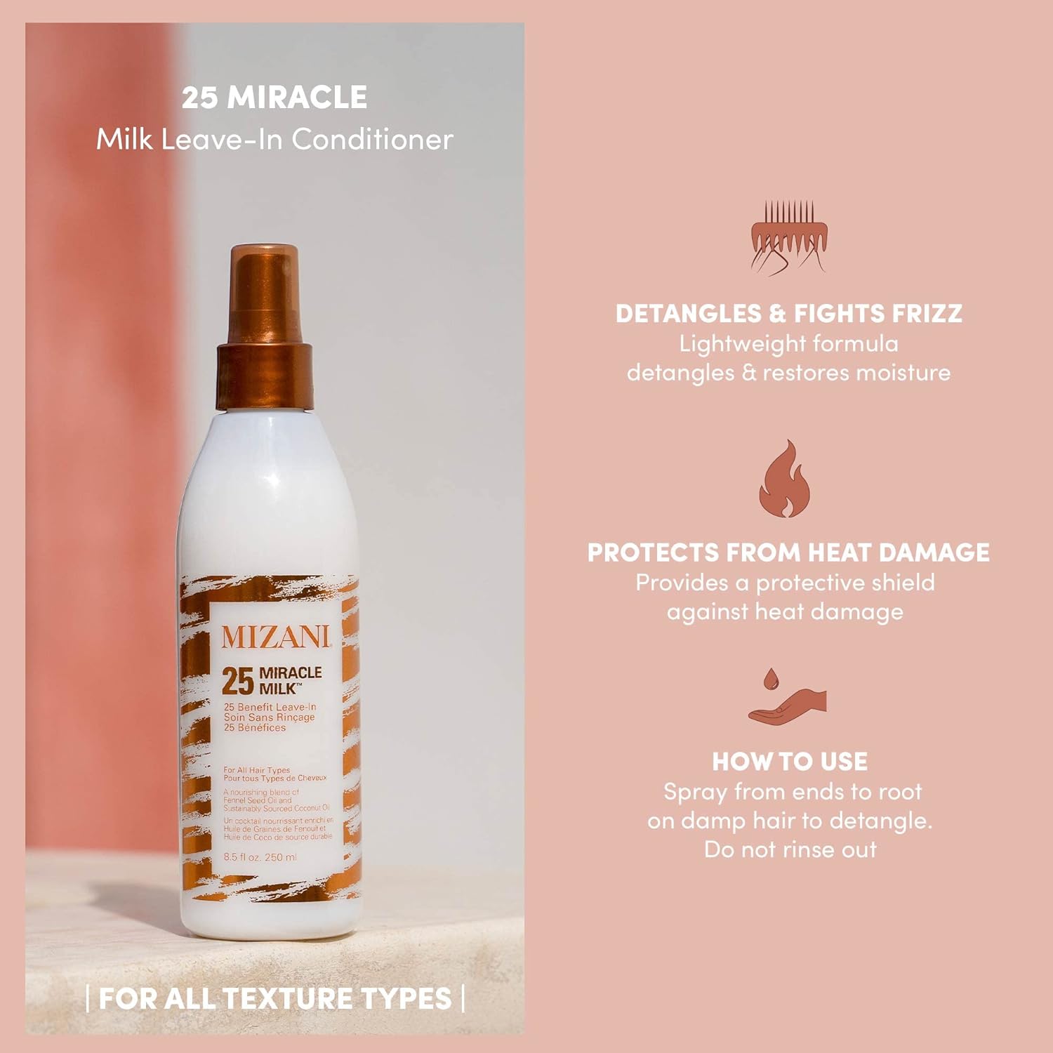 25 Miracle Milk Leave-in Conditioner penetrates deep down to the follicle to prep, protect and restore moisture, leaving hair more manageable, shinier, and softer.