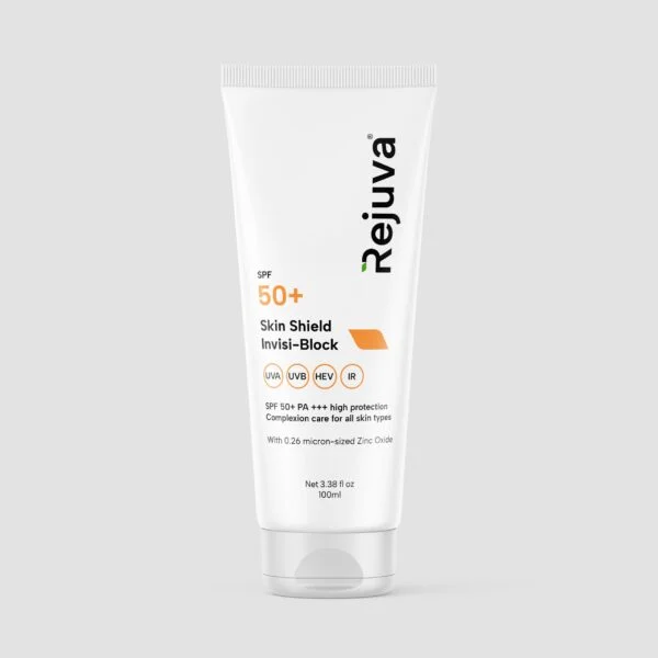 The Rejuva SPF 50+ Skin Shield Invisi-Block is a lightweight, broad-spectrum sunscreen designed to provide high-level protection against UVA and UVB rays without leaving a white cast or greasy residue.