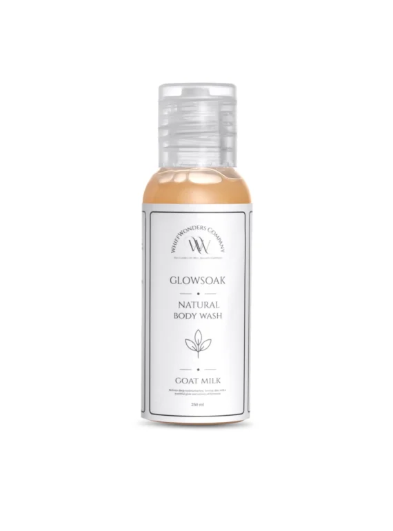 Embrace the luxury of nourished skin and the joy of a comforting fragrance with our GlowSoak Natural Body Wash – Goat Milk.