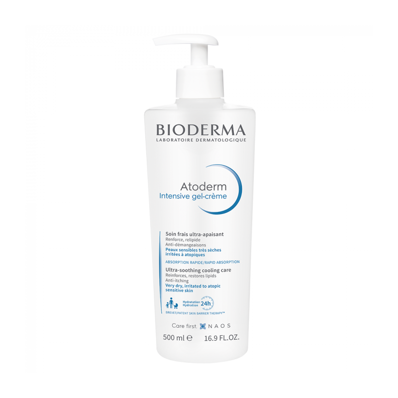 Bioderma Atoderm Intensive Gel-Cream Ultra-Soothing Cooling Care nourishes the skin and relieves symptoms of discomfort being ideal to comfort very dry, irritated and atopic skin.