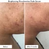 The gold standard ingredient for fading hyperpigmentation is a tyrosinase inhibitor called hydroquinone. However, it has been shown to cause skin sensitisation and exogenous ochronosis (blue/black marks) when used long term, not used correctly or when not used under the supervision of a dermatologist. This is why we formulated our serum with ingredients that are safer and milder than hydroquinone but still as effective.
