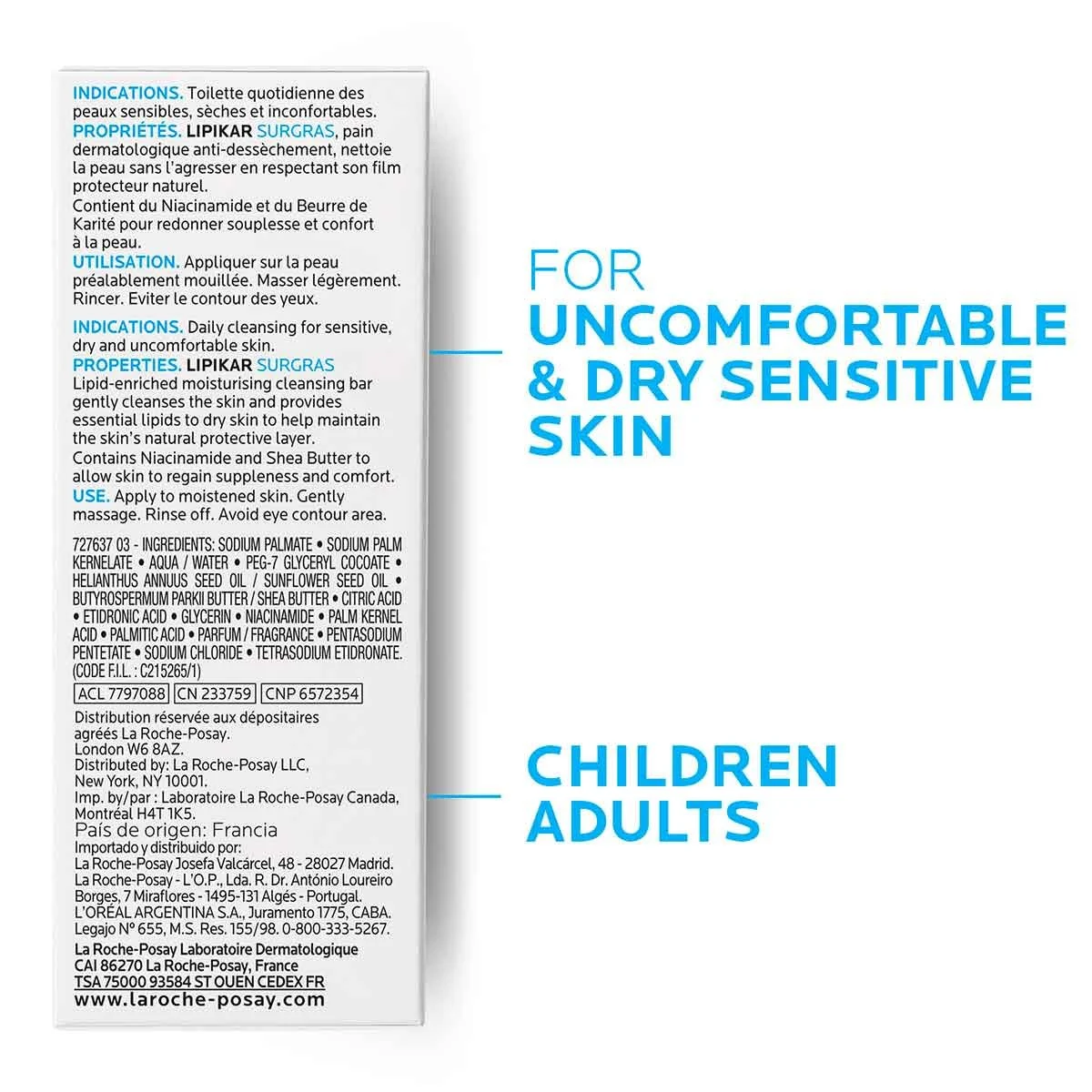 LIPIKAR PAIN SURGRAS, lipid-enriched moisturising cleansing bar gently cleanses the skin and provides essential lipids to dry skin to help maintain the skin’s natural protective layer.