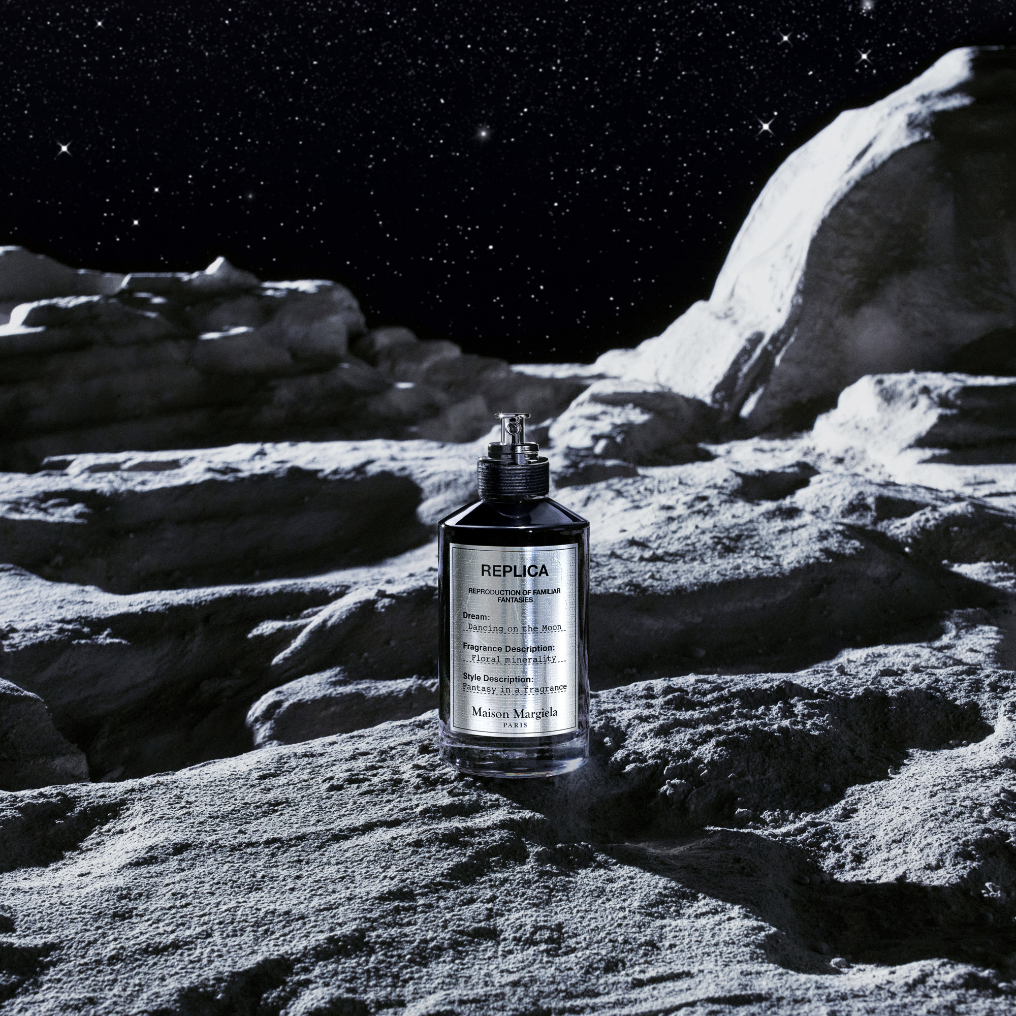 REPLICA Dancing on the Moon is an invitation to surrender to a hypnotic dance on the moon’s surface. Let yourself escape to this ethereal lunar gathering. REPLICA Dancing on the Moon Eau de Parfum is a floral ambery unisex perfume.